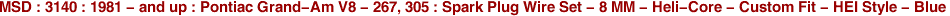 MSD : 3140 : 1981 - and up : Pontiac Grand-Am V8 - 267, 305 : Spark Plug Wire Set - 8 MM - Heli-Core - Custom Fit - HEI Style - Blue