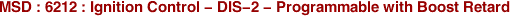 Four cylinder distributorless ignition applications (with two coil packs) will benefit from the incredible spark energy of the the new MSD Programmable DIS-2 Ignition Control as well as its ignition programming capabilities! MSD"s CD circuits work with state-of-the-art IGBT coil drivers to deliver a spark with 190 mj of spark energy! Below 3,300 rpm, there is series of multiple sparks that burns in the cylinder for 20° producing a smooth idle with great throttle response. Individual Cylinder Timing: Maximize the performance of each cylinder to compensate for differing dynamics in airflow and other variances. Launch Timing Curve: Program a separate timing curve exclusively for the launch! Boost Timing Curve: For turbo or superchargered applications an optional MAP sensor can be installed so you can control the ignition timing in relation to boost pressureMulti-Step Retard: Three separate stages of retard can be activated by either rpm or a separate activation wireGear RPM and Retards: Program a different rpm shift point for each gear as well as a retard for every gear change