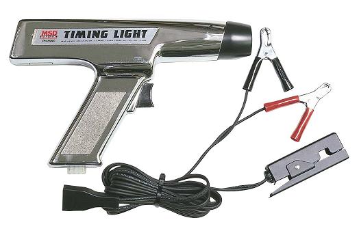 This MSD Timing Light is constructed with solid state circuitry and uses a Silicon Controlled Rectifier (SCR) that provides accurate and stable timing signals from 0 to 8,000 rpm. Also, a linear Xenon flash tube and a focused Fresnel lens provide a light that is bright enough for use in broad daylight. This rugged timing light is built to work in rough environments such as racing pits or professional mechanic shops. The MSD Timing Light's heavy chrome-plated metal housing is very strong and easy to clean.