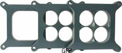 Spacers isolate carburetor from manifold, preventing horsepower-robbing heat transfer while also increasing air flow due to the increase in distance from the bottom of the carburetor to the manifold plenum. Spacers are precision CNC-machined in the U.S. from a state-of-the-art polymer compound and can withstand temperatures up to 400deg F. Available in open or four hole versions for popular 4150 and 4500 Holley style carburetors in 1/2", 1" and 2" thicknesses. Four hole spacers are additionally4500 Tapered 4-Hole Carb Spacer, 1"Thick